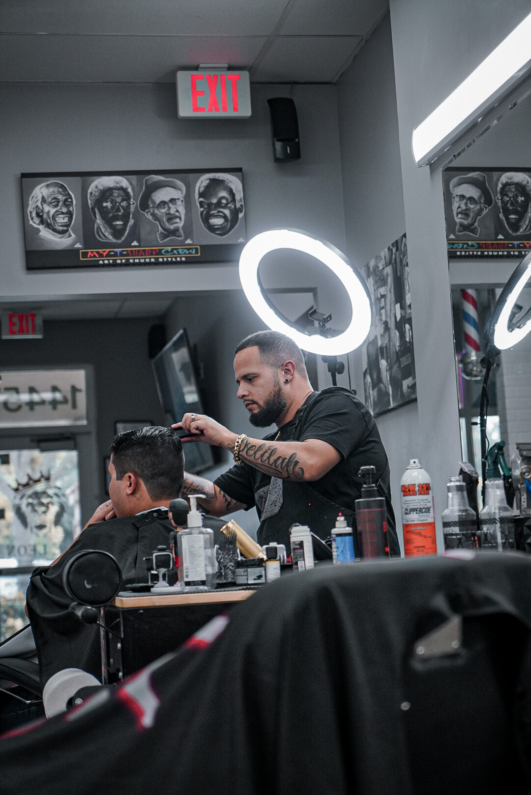 At De Leon Barbershop, our team of skilled barbers is what sets us apart. Each barber brings years of experience and a unique style, but we all share one goal: to make sure every client leaves looking and feeling their best. Whether you’re here for a classic cut, a sharp fade, or a custom beard trim, our team is ready to deliver precision, professionalism, and a friendly vibe every time.